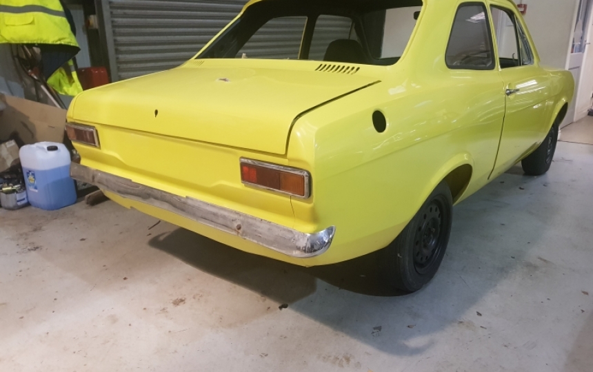 Early type MK1 escort Rolling Shell. This is an export spec shell which is very similar to an Early Twin Cam Shell. It has the locks in the door handles, shocks that bolt on underneath and the early style pointy heater bubble. Its generally very solid with good inner wings, bonnet, arches, sills etc. It has had the tunnel modified to take a bigger gearbox at some point and that would need sorting out. Dent on bootlid where someone has closed it on something. Looks pretty decent underneath. Its been painted with some sort of stonechip and then body colour. Also looks to have had a repair up under nearside inner wing. Definitely not perfect but very solid with great potential. Paintwork apart from bootlid is decent and car looks very straight uptop.