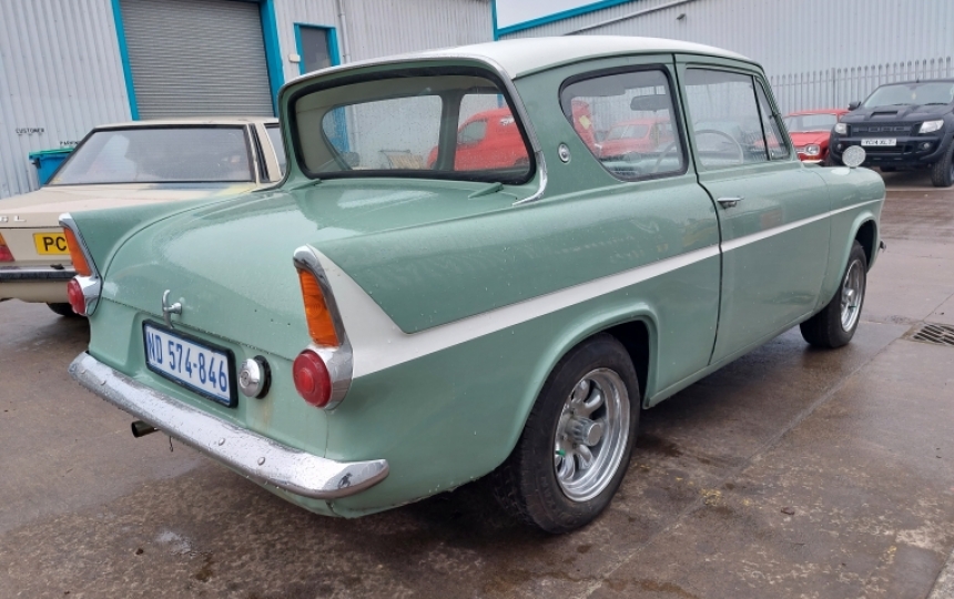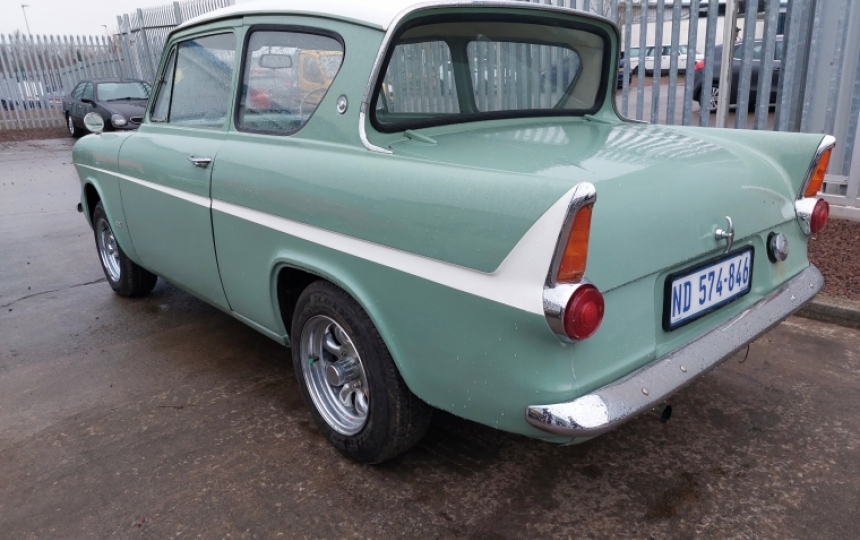 Ford Anglia 105E. RHD Import from South Africa. All tax and duty paid and NOVA declaration done. We will complete all the UK registration paperwork for the new owner. Good looking little car but will require some repair work on the rear crossmember and boot floor.