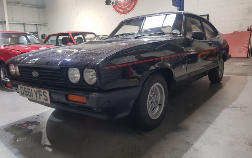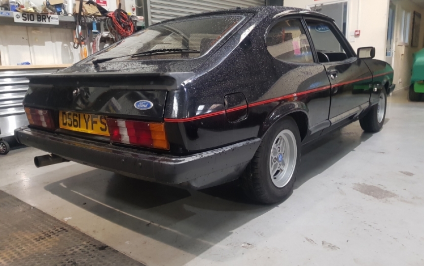 Body - Capri Laser shell. Original floors, sills, arches, boot floor. Has had repairs on strut tops in the past and a repair on top of the drivers door post. Underneath is very good. Needs a bit of a wirebrush in bits but no holes or rot. Jacking points have the usual dents but overall very good. Paintwork has survived well and the car is very presentable. There is a bit of bubbling on nsr lower quarter that will need attended to and a few storage marks here and there.  Overall a decent looking old car