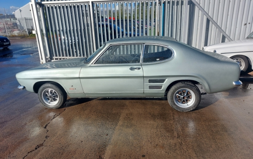 Ford Capri 3.0 GT Auto, RHD Import from South Africa which is fully UK registered. We have the V5 here. The car is very solid and really good underneath. It does start and run. Paintwork is poor and interior needs updating....but what a solid example.