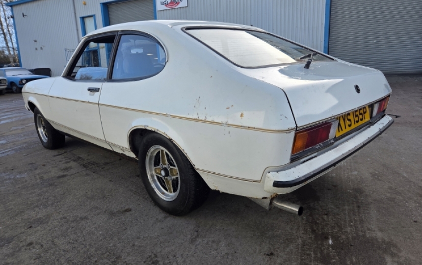 Here we have a genuine 1 owner, zero previous owners on the V5, Capri Mk2 1600 GTS. These were commonly known as a JPS even though thats not what Ford called them. I thought Id get that in there before theres an onslaught of folk dying to correct me. This particular car was bought new from Armour Motors Ford in Giffnock in Glasgow by a gentleman from the Edinburgh area. The car was only used till 1981, covering 53000 miles, when it was garaged for some reason. We have the original V5, a current style V5 and confirmation from the DVLA that they have inspected the car and are happy its genuine. We also have paperwork from Capri Club International confirming the cars identity. It will need a light restoration but its totally complete and can be heard running