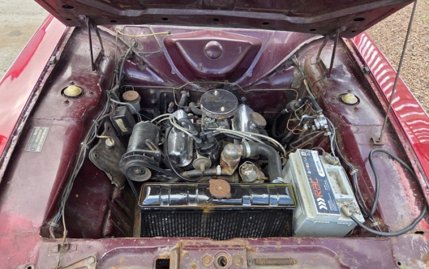 Mechanics - V4 engine which starts and runs. It was a bit misfirey, if thats even a word, but we put a set of plugs in it and its much better. it runs and drives and the auto box changes gears ok. The selector on the column shift needs adjusting somehow as it doesnt line up properly with the gear you are in. Brakes feel ok. Fuel time has been temporarily replaced with one from a Cortina mk1. The filler neck doesnt line up so this will need addressing. Car will need a good checkover from front to back before being used in anger