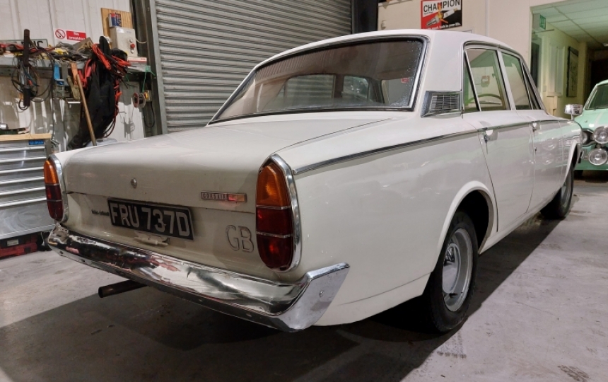 Lovely old 66 Ford Corsair 1700 V4 Automatic. 86000 Miles from new and only 4 Owners. The last two owners are local to us and we have known the car for the last 5 years. It has had very little use but has had a few quid spent improving it in recent years. We have some old MOTs with the car and paperwork suggesting that it must have been in storage for a long time. It was reregistered with its original number FRU 737D in 2010 as it had lapsed.