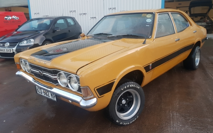 Ford Cortina 3.0 GT, Genuine South African factory built model. We have included a certificate from Ford in the pictures to confirm that it is a genuine 3.0 GT as this model was not available over here. Very solid original old car, apart from the wheels, but will need a light restoration and a few localised repairs underneath.