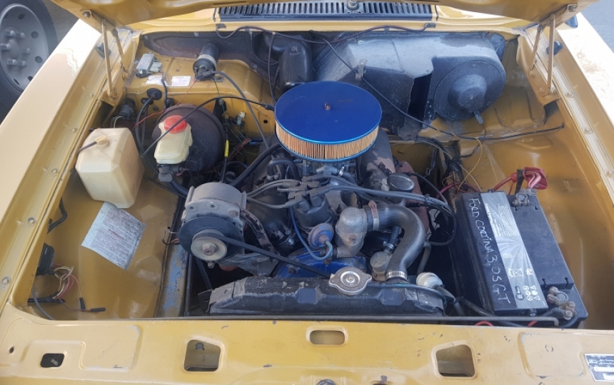 Body - Mk3 Cortina shell. Its never been patched or botched up. Looks like its all original panels and paint so a good starting point. Good inner wings, doors, boot bonnet, pillars, arches Will need a few minor repairs on front floors, spare wheel well, sills., lower rear quarters. Slight bump on osr corner. Paintwork is the original Maize yellow which is scruffy and will definitely need redone. Has the 3.0 bonnet which is more raised in the centre than the UK ones.Correct Gt badges and grille. Centre chassis rails are solid bbut quite well battered and bruised. Could be pulled out but id probably replace them if i was doing the car.