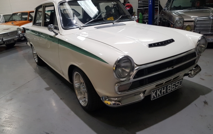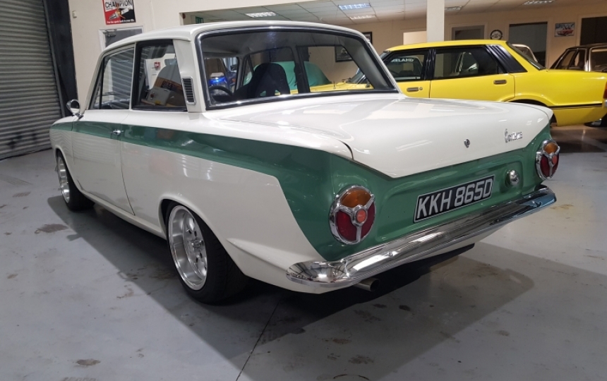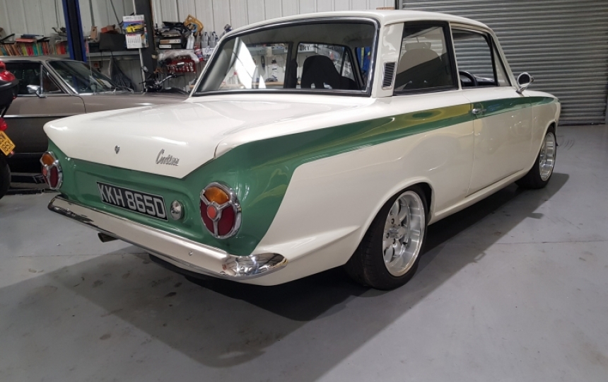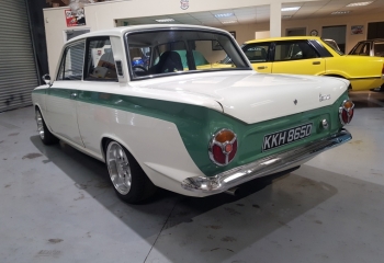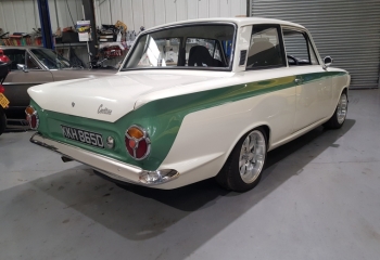 Body - 2 Door Mk1 Cortina export spec shell with extra stengthening on strut tops. Good solid shell. Had a few repairs done and look a decent standard. Chassis rails have a few dents from jacking up but are solid. Body is nice and straight. Paintwork is very tidy. New bullet mirrors, new window rubbers and door rubbers