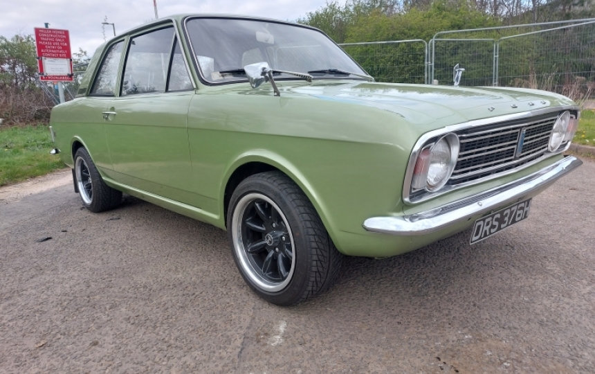 1967 Ford Cortina Mk2 2 Door with 1.6 Crossflow and Twin 40s fitted . This was an Import from Finland and its completely solid. Its been converted to right hand drive and we have the current Uk V5 here. The car has GT badges and dash but its just a standard model.
