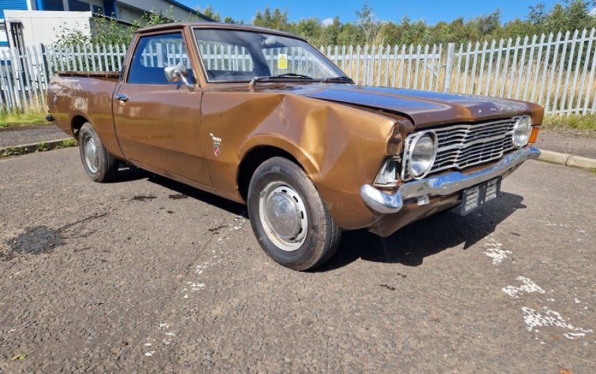 1973 Ford Cortina 1.6 MK3 Pickup or Bakkie as they are known in South Africa. Genuine Ford factory built pick up and not a conversion. This is a RHD import from South Africa with all tax and duty paid. Nova declaration has been done and we are happy to complete all the registration paperwork for the new owner to get it UK registered. This is the rear styleside early version with the coke bottle style rear and early sloping dash. It has accident damage to the front right hand corner