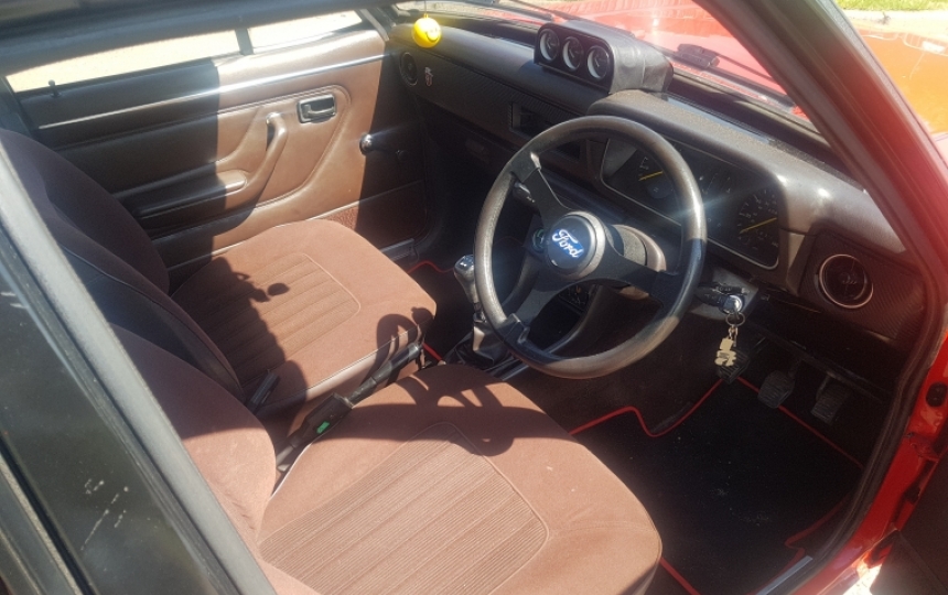 Body - 4 door Mk2 Escort shell. Car is solid. Has had a few repairs over the years like most 40 odd year old escorts but needs nothing doing currently. Paintwork is tidy and perfectly useable. Owner has added sport decals and the vinyl roof has been replaced.