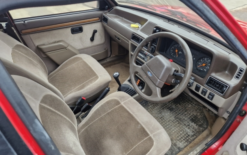 1985 Ford Escort MK3 1600 Ghia with 79k miles and only 2 owners from new. We have the original bill of sale for the car which was originally registered by Gates of Harlow Ford dealer. We have the original service book which has 6 supplying dealer stamps and a spare key still taped into it. We have the V5, and a number of old MOTs. Its not been used and has been dry stored for the last 3 years. Its a very original old car which starts runs and drives. Its not currently MOTd and if the buyer wants to pay the asking price we are happy to MOT it for a year. Original supplying dealer plates and window sticker still on the car