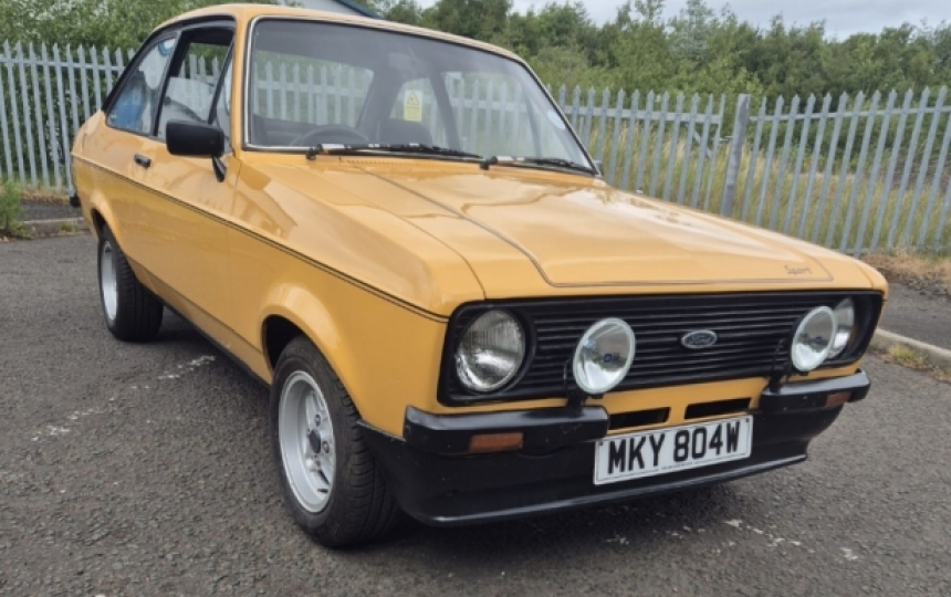 1980 Ford Escort 1600 Sport. RHD Import from South Africa with all tax and duty paid. UK reg has been received and we have the V5 here. This car is in its original sunflower colour and is a genuine sport. Both the original vin plate and build plate are intact. It starts runs and drives but will need a bit work to get it on the road properly.