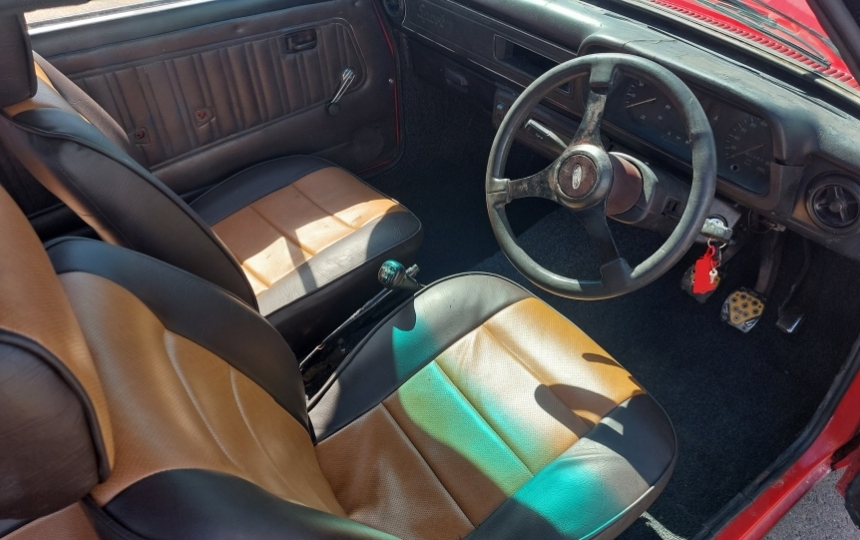 Interior - Original sport seats which have been retrimmed and are perfectly useable but far from beautiful. Door cards are scruffy. Dash top is cracked, headlining is original and good. Sport steering wheel.