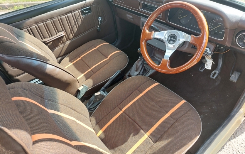 Interior - Seats have been retrimmed. Tidy enough job but not original. Good door cards, carpet and headlining. Aftermarket steering wheel.