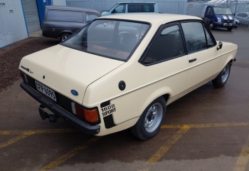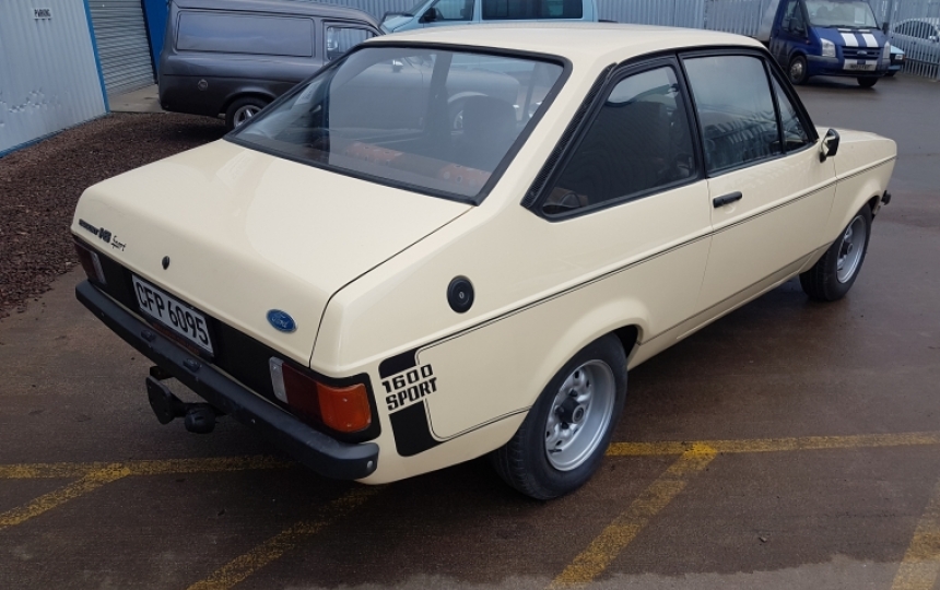 FORD ESCORT 1600 SPORT IN BIEGE. VERY DECENT ORIGINAL EXAMPLE. GOOD BODY WITH ORIGINAL INNER WINGS, SILLS, ARCHES, STRUT TOPS. ITS ONLY EVER HEAD REPAIRS TO FRONT FLOOR PANS AND SPARE WHEEL AND TANK WELLS. PAINT IS DECENT WITH ONLY A FEW MINOR MARKS AS YOU WOULD EXPECT OF A CAR THIS AGE. SEATS HAVE BEEN RETRIMMED. GOOD ORIGINAL DOOR CARDS AND HEADLINING. MECHANICALLY THE CAR IS ALL STANDARD 1600 WPORT AND STARTS RUNS AND DRIVES. CAR WILL NEED UK REGISTERED BUT WE CAN ADVISE / ASSIST YOU WITH THIS PROCESS.