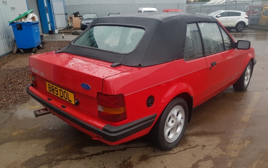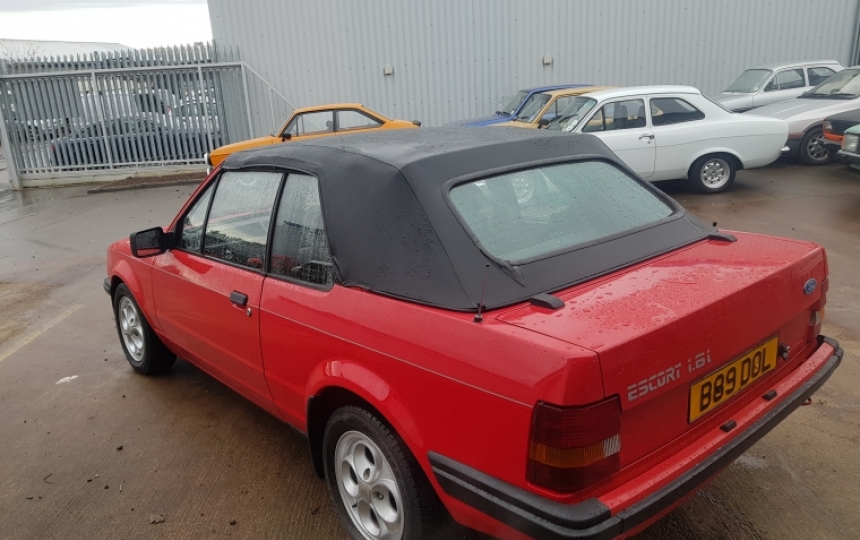 Ford Escort 1.6i Cabriolet. This car was recently owned by a film company and was used in various TV shows with the most recent being on the opening credits of "Bancroft". Its a very solid useable car which runs and drives well. The original handbooks are with it and some old mots. Its had a bit of paintwork done at some point on lower rear quarters and you can see a difference in shade.