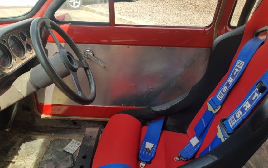 Interior - Full Roll Cage, Alloy door cards, bucket seats and harnesses, 6 dial dash.
