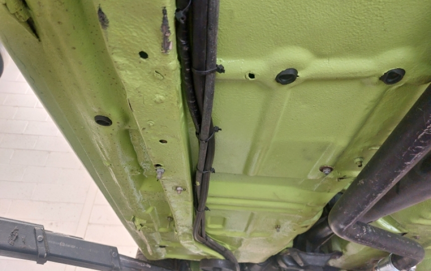Body - 1969 Mk1 Escort shell. Its an export spec shell so it has extra strengthening similar to our type 49 shells. Underneath looks very solid and is all painted body colour. Doors fit well on the shell. Panel gaps are good in the main. Paintwork is fairly tidy. There are a few minor marks but nothing major. Evidence of a bit filler in lower quarters, lower rear panel and door bottom. Its had Mexico stickers fitted when it was overseas but these are not quite right as the lettering is in the wrong place. Front spoiler fitted. Bonnet pins were fitted but one has disapeared in transport so that will need sorting.