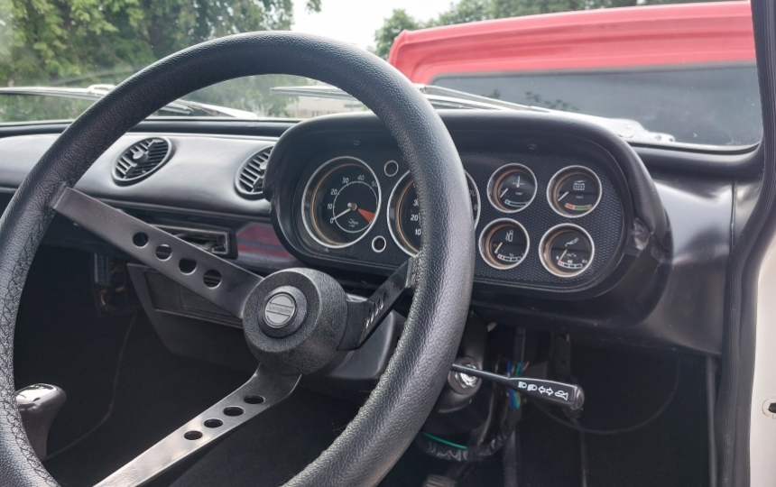 Interior - 6 dial dash which all works perfectly. Springalex steering wheel. Recaro front seats, standard rear.