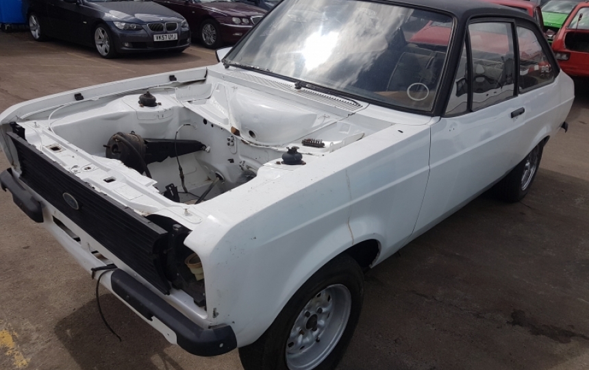 Ford Escort 1600 Sport, Rolling Shell. What you see is what you you get. In need of restoration but good starting point. Good inner wings , strut tops, rear floors are good. Will need work on front floors, boot wells, nsf chassis leg Also had a very minor bump on rear panel. Roof is not vinyl its black paint.
