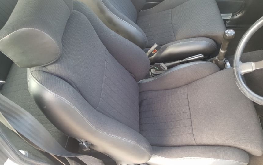 Interior - Roll top seats which have been retrimmed and also rear seat retrimmed. Safety devices half roll cage bolted in. Ford motorsport steering wheel with RS dash. . Mobile phone chargers built into gloves box and usb stereo with custom speakers in back .