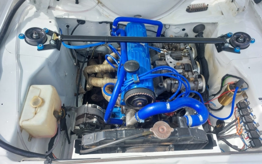 Mechanics - 2.0 Pinto with High Compression Pistons, worked head, Rally Cam, Twin 45s, SD Bolt in Roll Cage, Alloy Rally Fuel Tank, Bilstein Suspension, Roller Top Mounts, Tarmac Springs, Strut Brace, Adjustable TCAS, Anti Dive Kit, GRP 4 Steering Joint, Disc Brake Rear Axle, 4.1 Diff, Tran X Plate LSD which was rebuilt not so many miles ago, Type 9 5 Speed Gearbox with Quick Release Alloy Bellhousing, Quick Shift Gear Stick, One Piece Prop. AP Racing clutch, Electronic Distributor, Vented Front Discs, Bias pedal Box, Cossy Rear Calipers, Hydraulic Fly off Handbrake. The car starts runs and drives. Carbs might need a bit setting as it runs OK when using it hard but if its ticking over for a while it needs a rev to clear its throat and can sometimes foul the plugs if ticking over too long. Recently the front calipers have been refurbished, brakes all serviced and bled, new quick rack fitted. Coolant has been flushed, new thermostat, racetech temp guage fitted and electric fan fixed and tested.