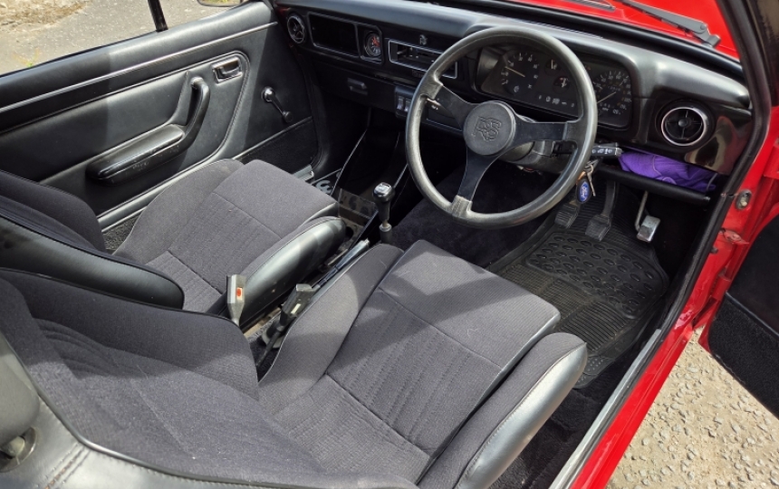 Mechanics - Car starts easily with no smoke or rattles. 5 Speed gearbox fitted. Brakes and clutch are good. Car drives well and is nice and tight. Very slight rumble from the diff but nothing youd need to do anything about in the short term. Tramp bars present on the axle. Uprated front discs, Under the bonnet all looks standard with the standard RS mainfold and air filter. It has the alloy sump, mounts and bellhousing