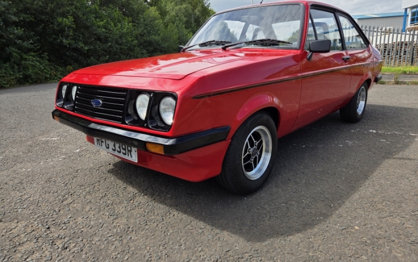 1977 Ford Escort RS2000 Mk2 . Good useable example which is on the button, everything working, and comes with a current MOT till April 2026. This is a decent looking car and can be driven home. We have the V5, a well presented history file with receipts back to 2007, old Mots and tax discs back to 1998. The car has had 8 previous owners. If you want a concours car this is not it. If you want a very presentable, useable example which wont break the bank in terms of RS2000s then read on.