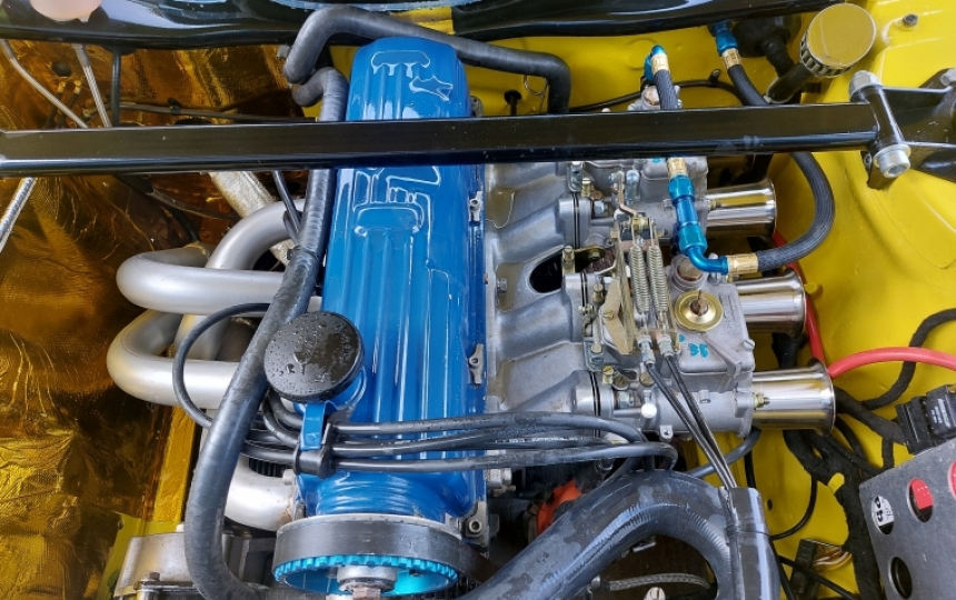 Mechanics - 2.0 Pinto which was built by Jem engines. Not sure on the spec internally but Im told it has 160 bhp and after driving it Id say thats about right. The engine has just been run in and is basically new. Its running on new Twin 45s, , Alloy Rally Fuel Tank, Straight Cut 5 speed gearbox with Quaife internals , LSD, single leaf rear springs , car polybushed throughout, quick rack, strut brace, silicone hoses, alloy radiator, ashley exhaust, new prop, 1 inch lowering blocks, new hel brake lines, new handbrake cable, bilstein rear shocks, alloy sump and bellhousing, new gearbox mount, willwood front calipers, vented discs, front coilovers, lightweight race battery, bias pedal box,