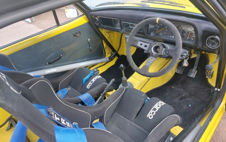 Interior - RS Dash with all gauges working apart from fuel guage as its an alloy tank in the boot, Sparco seats with TRS harnesses, Flocked Dash, Alloy door cards. No Headlining, full Safety Devices cage suede steering wheel, seats are quite narrow so if you have a bit extra timber like me you might not fit in them and they may need changing. If your built like a whippet then youll have no problem.