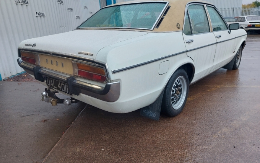 Body - MK1 Granada Saloon. All looks original underneath with no signs of previous welding. Car is very solid and is not caked with underseal or similar. The body is very straight and tidy. Paintwork is nice and presentable. Its not a show winner but would happily sit with the crowd at any show. Ghia grille, tan vinyl roof and matching rear panel. Has Perana badges and V8 badges on it, similar to a genuine Perana.