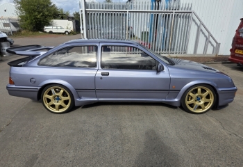 Its a Moonstone Blue 3 door cosworth with all genuine RS500 parts which looks correct being on a E plate. Same owner for the last 16 years wanted for nothing over the years