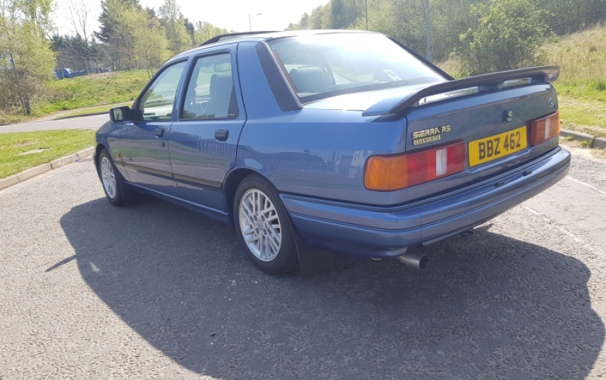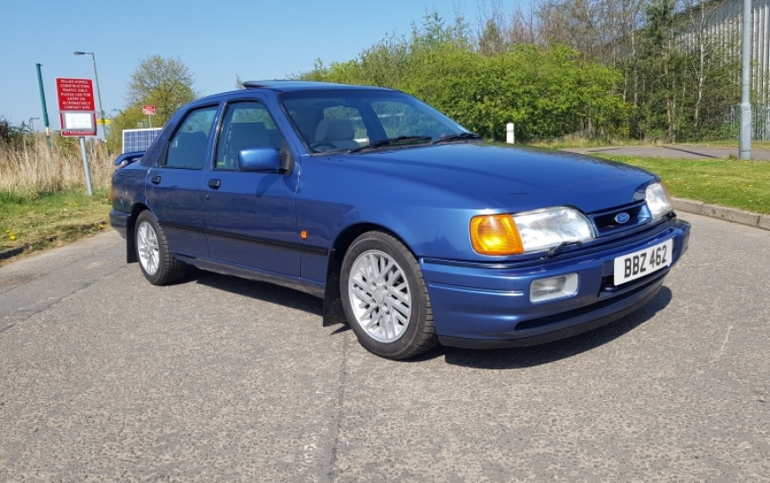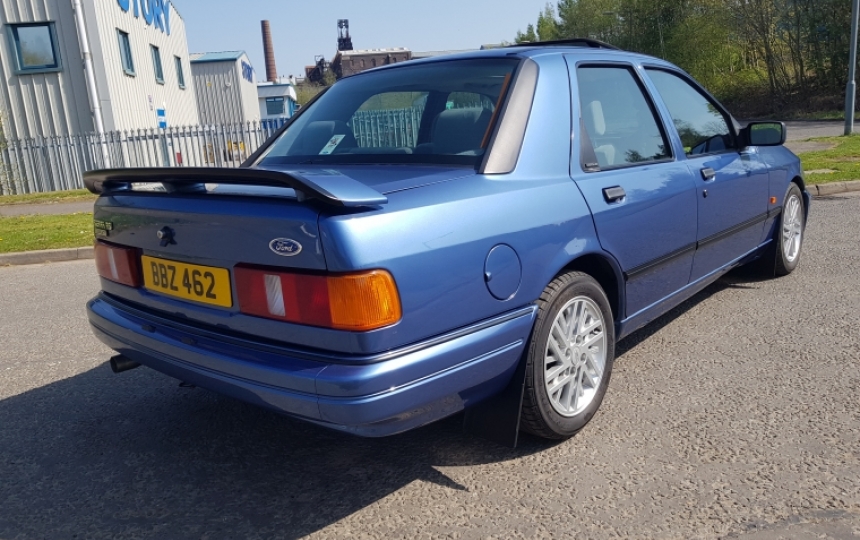 1988 Ford Sierra RS Cosworth in Crystal Blue with only 2 owners from new and genuine 32000 miles. This car was in a private collection in Northern Ireland since 1991 and has been very seldom used. Since we got it we have fitted a new standard exhaust, motd it and serviced it including timing belt. We have the V5 showing 1 previous owner and a couple of mots from when it was used. Other than that it was stored.