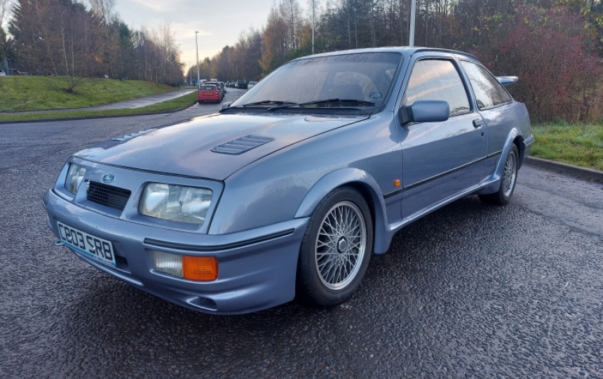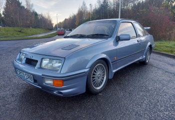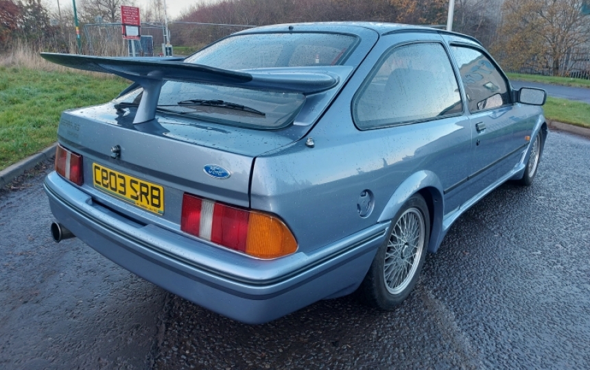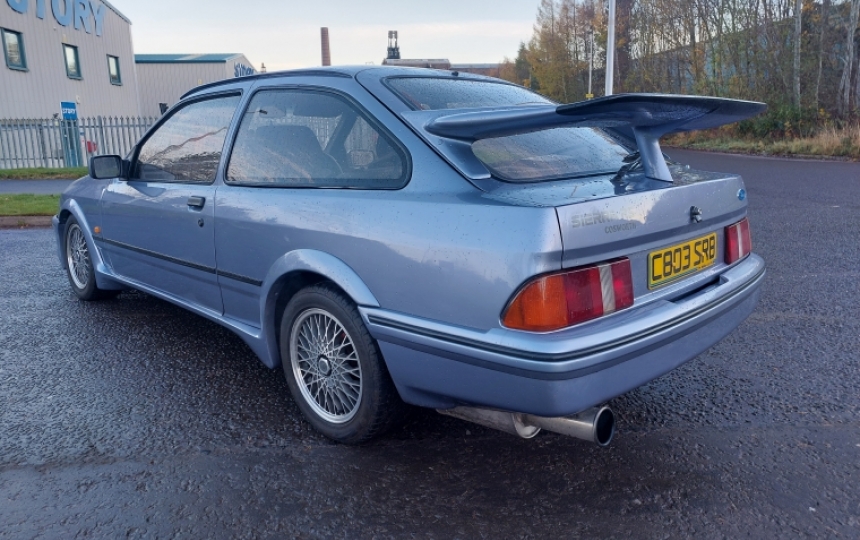 Ford Sierra Cosworth. We are told this car is an ex Ford Press Car which was used by none other than legendary Touring Car Driver Steve Soper who successfully piloted the Texaco Eggenberger Sierra RS500s in both the UK and Europe. The car was originally registered as C219 XLK. We have all the copies of previous owners V5s including the first one showing Steve Soper as the owner. . Its had a couple of private plates in its time as well which were JCZ5 and GIB665. Its now registered as C803 SRB. I think given its history it would be better back on its original plate, which as its all documented should be possible if the new owner wants to tackle the DVLA.
