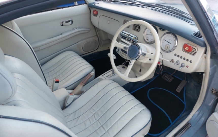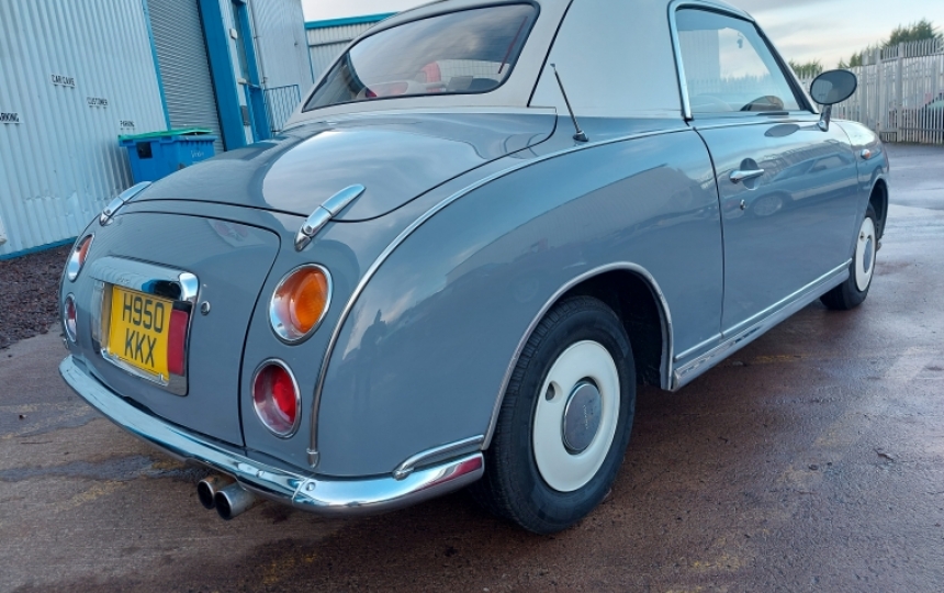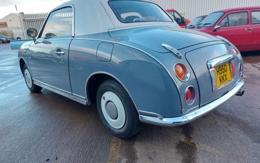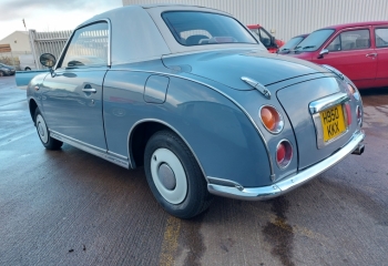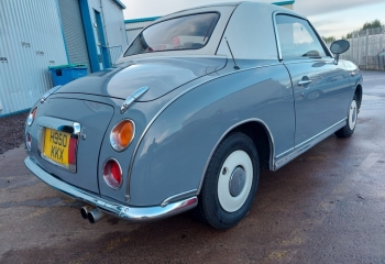 1991 Nissan Figaro in Grey with White Roof. The car just passed its MOT today 7th Jan. We have one set of keys the V5 lots of old MOTs and receipts for work done in the past including a new roof, timing belt changed at 81K a new turbo.