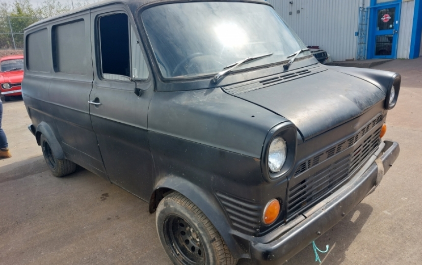 Body - MK1 Transit SWB - Van started life as a minibus but has had the windows filled in but apertures are still there. The floors are solid and it doesnt appear to have been welded. Inner wings are very good, sills, steps are all good. Pillars are good, Doors are good. Someone has butchered the tunnel a bit to make the V6 fit so this will need sorting. The arches and paintwork were possibly done at the blind spraypainters school. Great starting point for a project as its not a rotter. Rear wheel arch tubs look to have been modified. Not sure if its for the bigger wheels?
