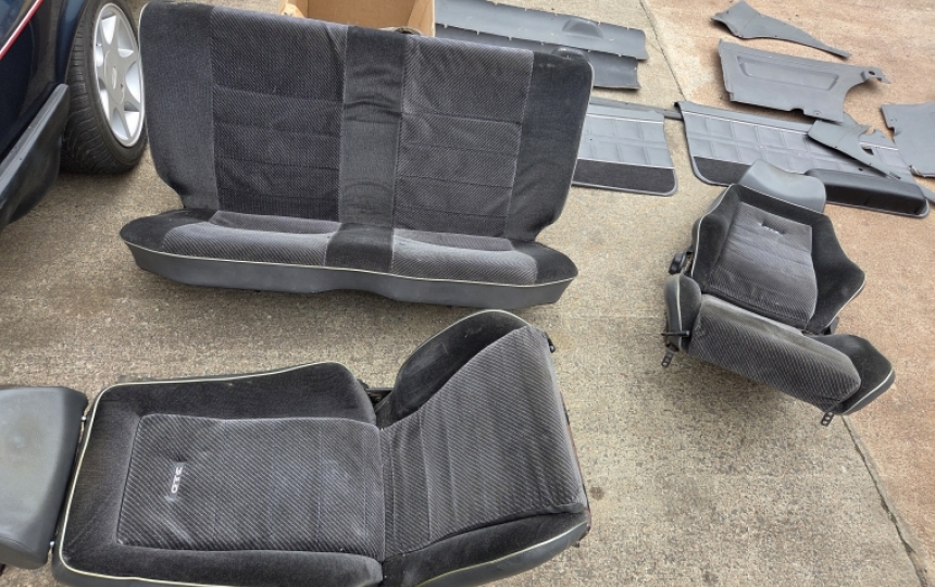 wear commensurate with age but no major rips or tears. Dashboard is removed and is in very good condition for age. Dashboard Gauge Clusters, plastic surrounds and switchgear all included. Seatbelts and stalks included. New Headlining Cloth Included. Original Door Seals and NEW set of seals also included. Period Radio included - not tested
