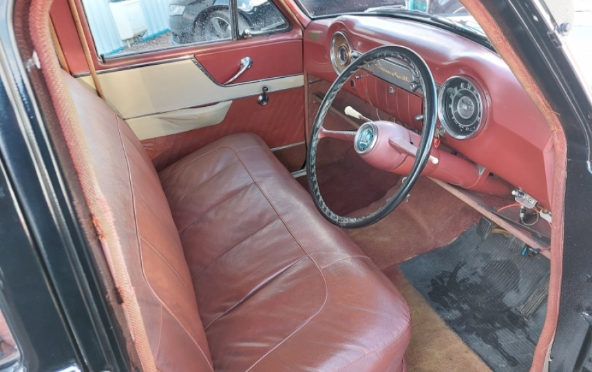 Body - 1956 Vauxhall Velox. In very good order for its age. No signs of any nasty patches underneath. Very Solid. Paintwork is nice and tidy but it has had a colour change at some point to black. It was originally silver according to paperwork. Very solid car with no signs of rot.